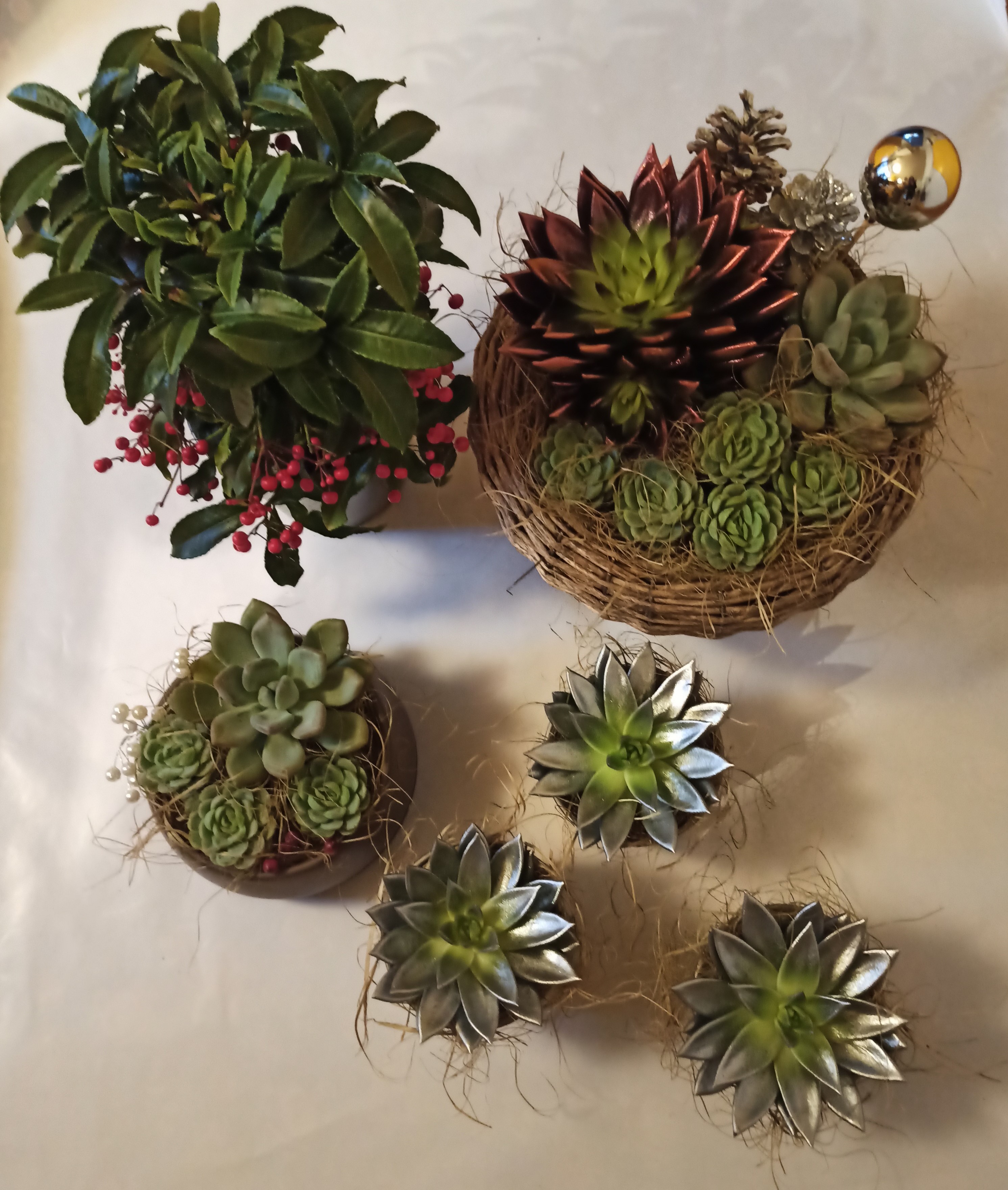 3. Erilaisia jouluisia istutuksia mehikasveista.