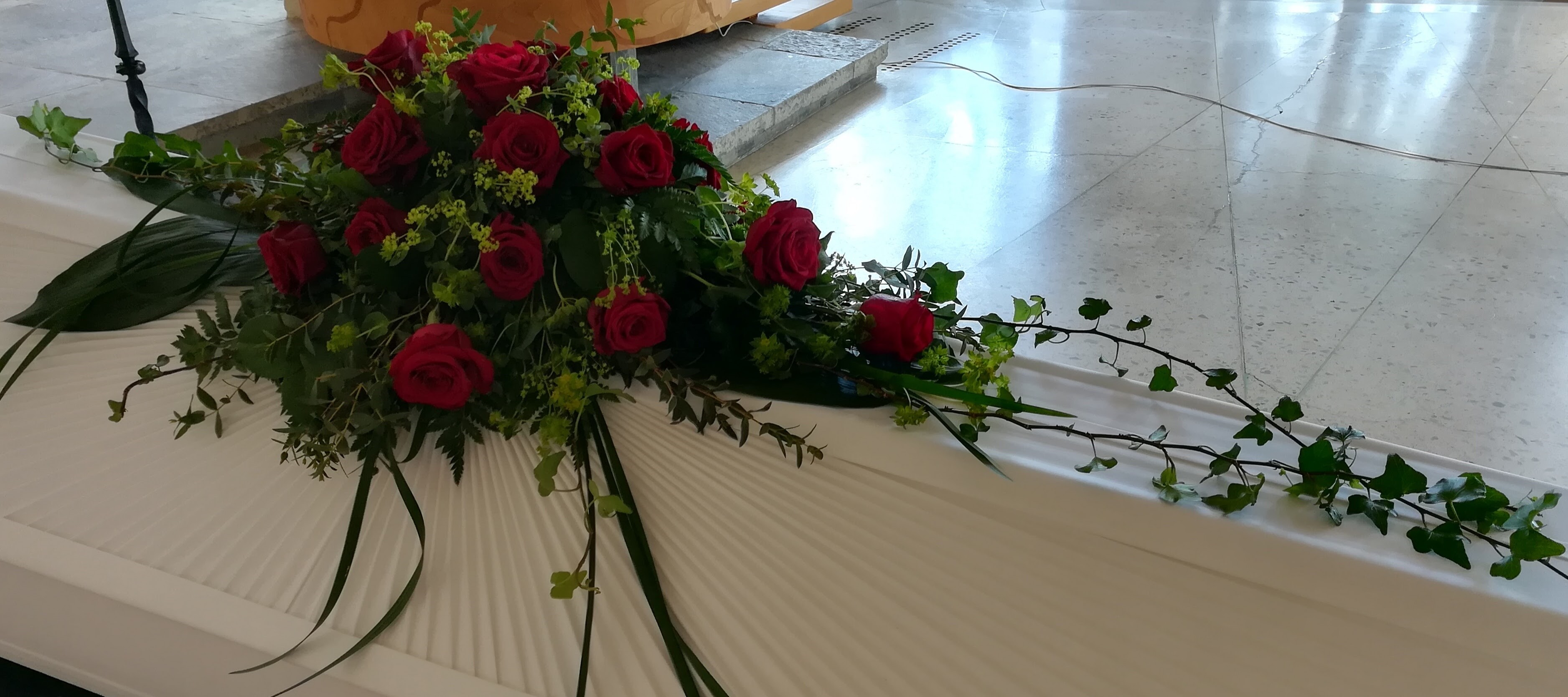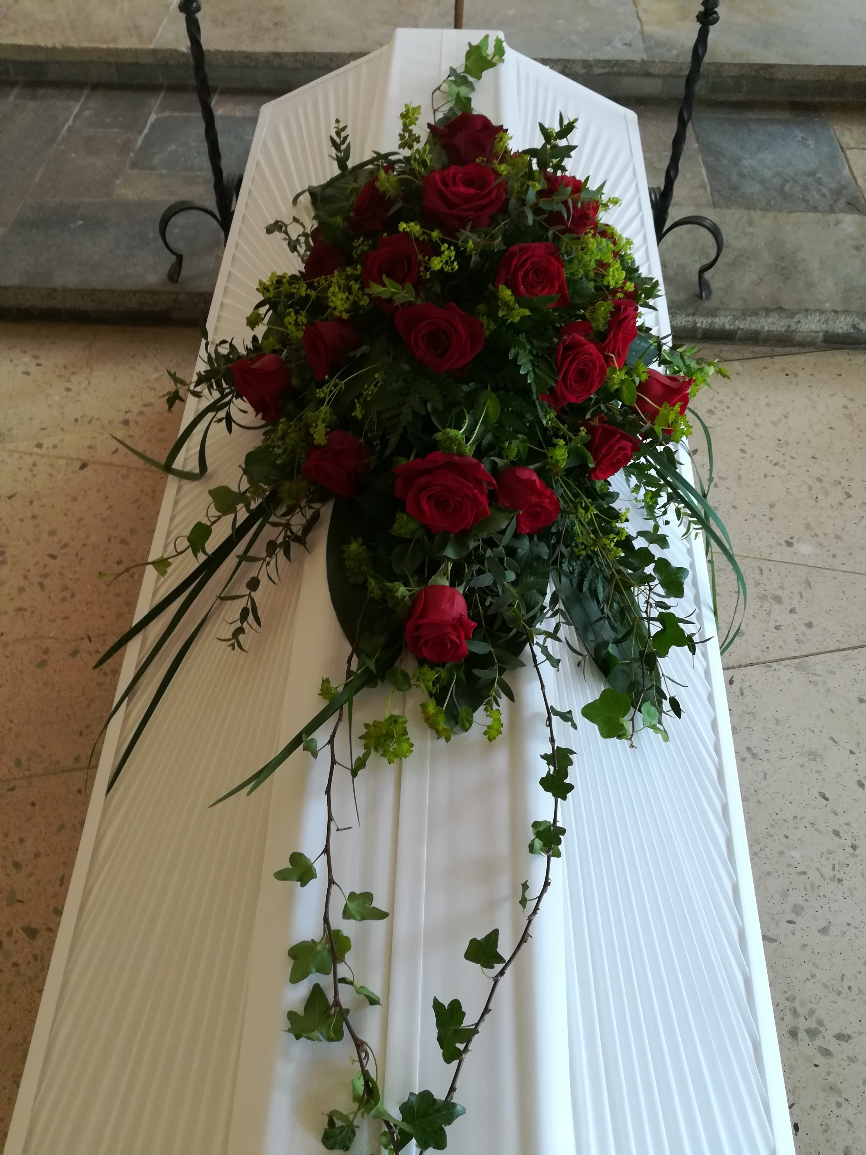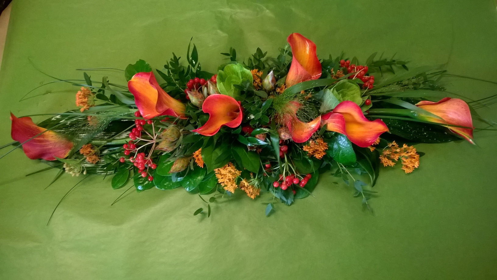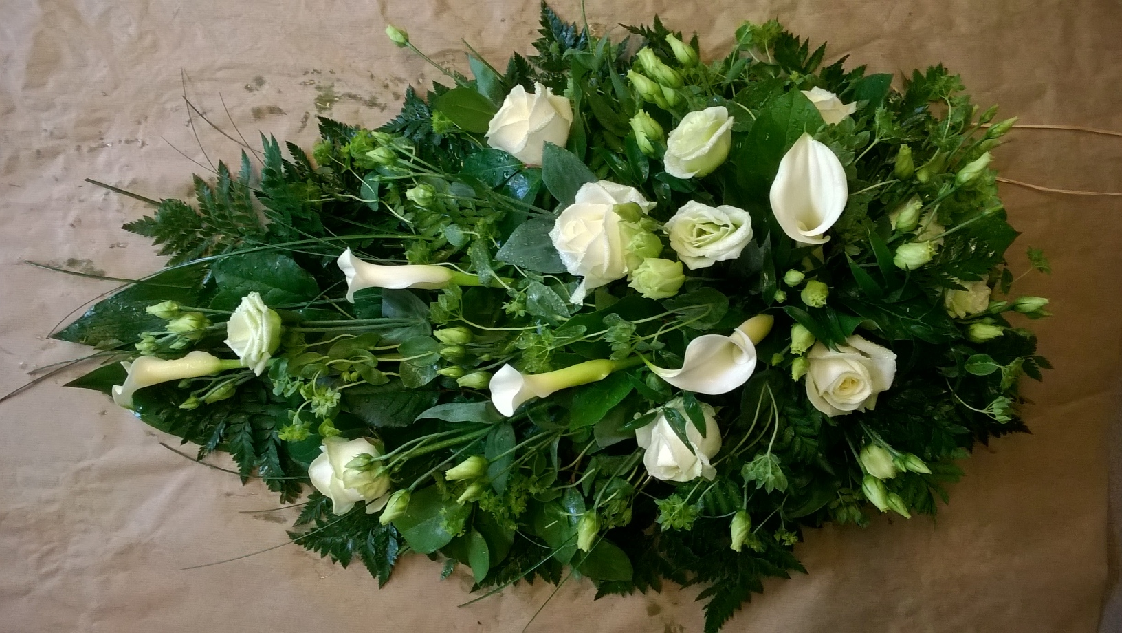 5. Taaemmassa hautavihossa käytetty callaa, limonium-kuivakukkaa ja eustomaa.