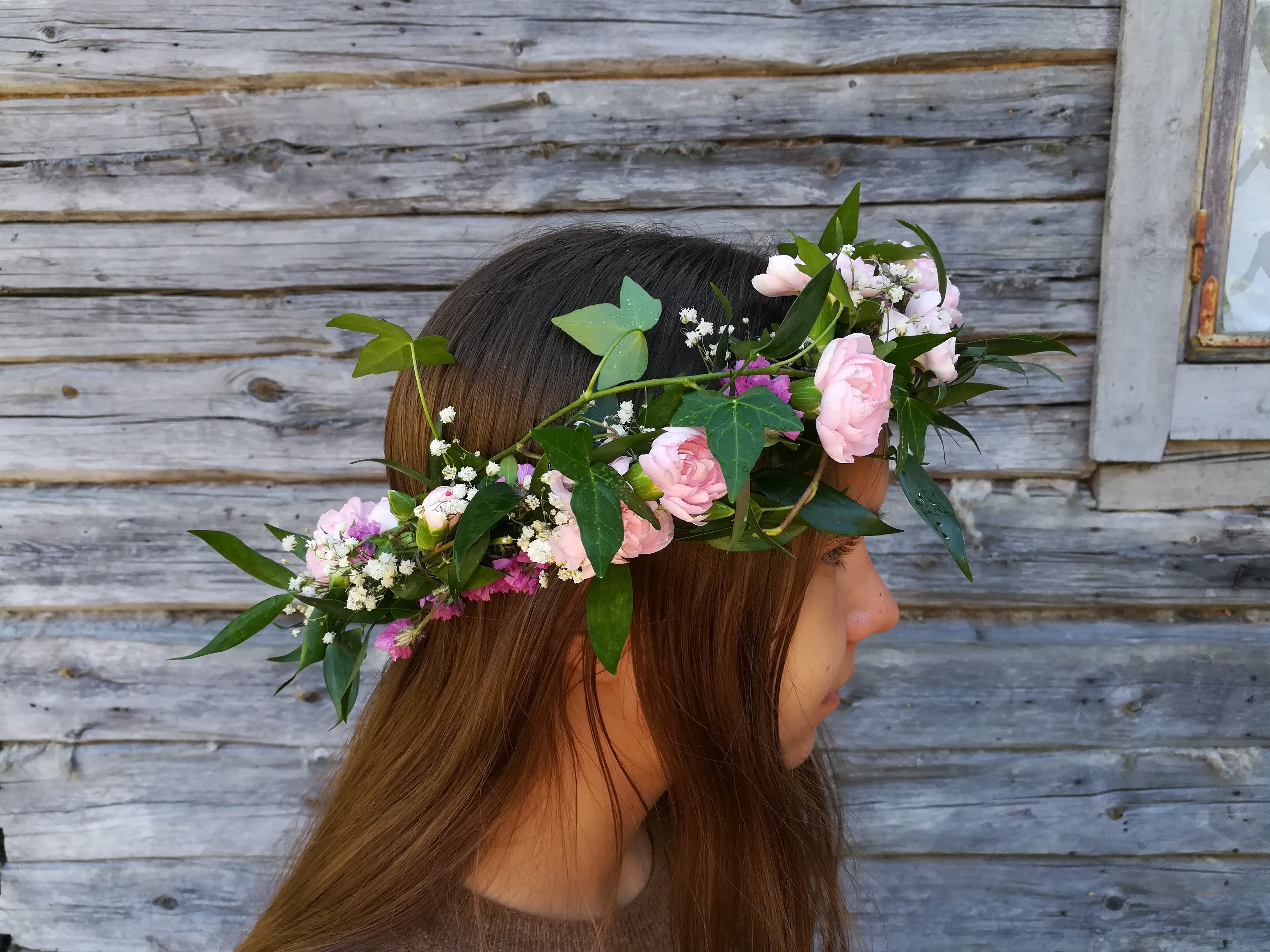 14. Kesäseppele, jossa murattia, oksaneilikkaa ja morsiusharsoa.