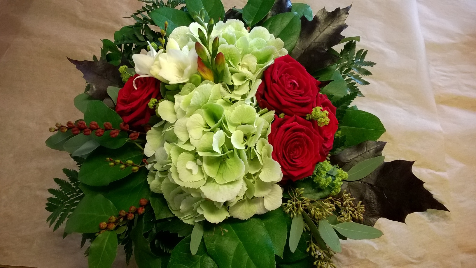 9. Hortensiaa, ruusua, freesiaa ja ruostekukkaa.